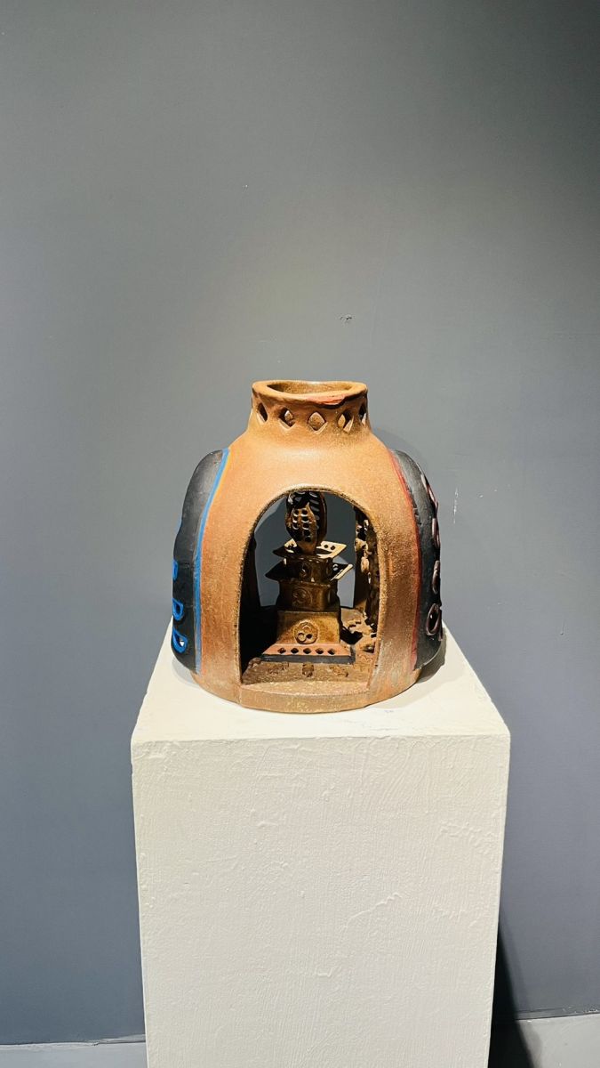 全東明老師軍職退役後醉心於陶藝創作,作品溫潤純真、將對土地的熱愛與生命的感懷揉進陶土中,從捏塑堆疊中尋找創作的語言,他的作品不事雕琢,卻流露出一種自然與本真的力量,彷彿山嵐與赤子之心的對話。