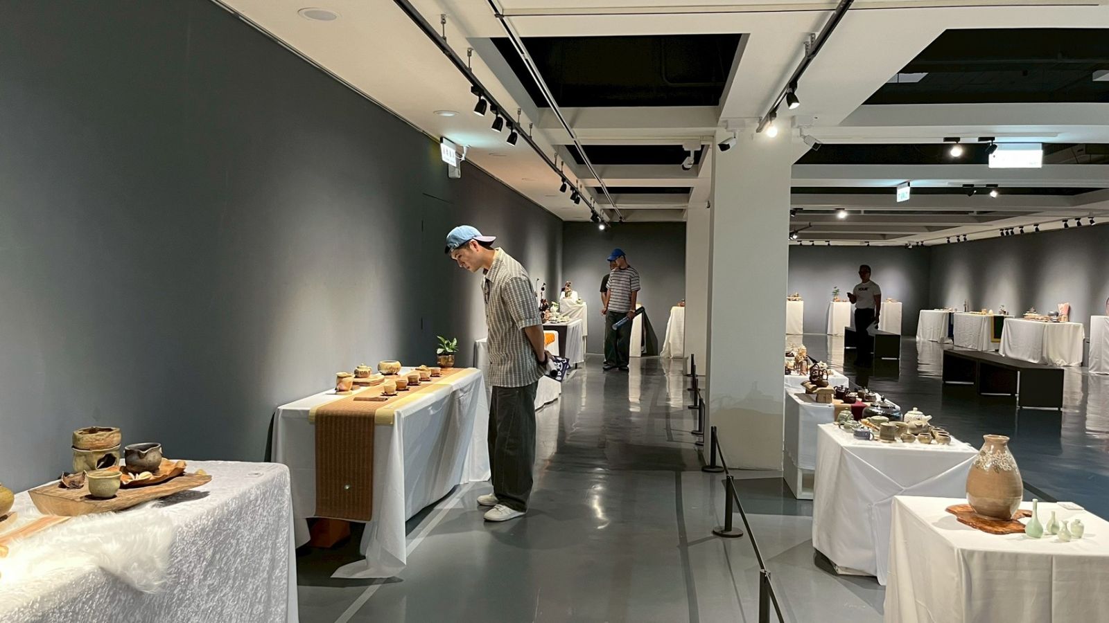 ▲台南市陶藝學會在新營文化中心二樓展示會員及青年創作者的精彩作品。