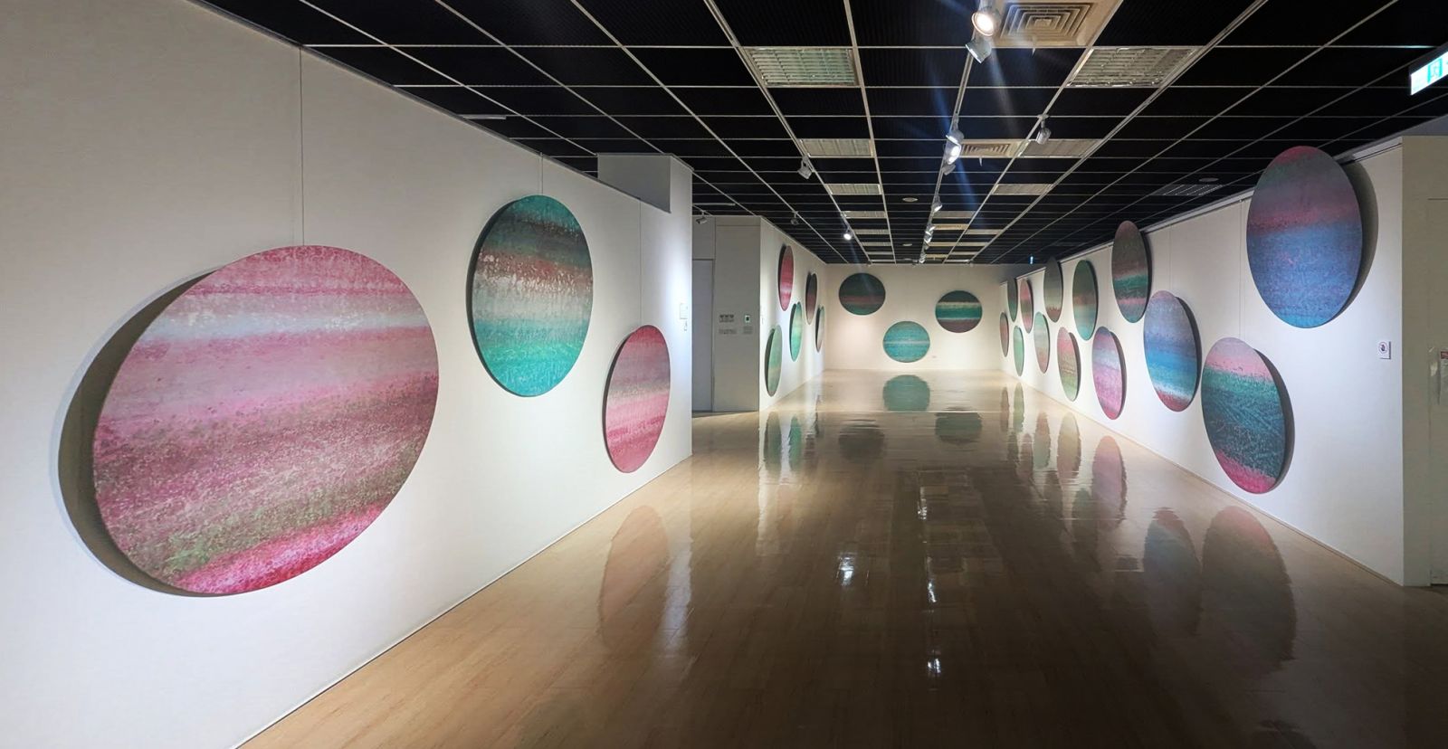 微光灑落天際,虹心球靜懸空中,以壓克力顏料層層堆疊而成,色彩如氣息般輕蕩。它在光與影、熱情與寧靜間尋找平衡,彷彿宇宙的回響,將心的聲音投向星空。在光影交織中,虹心球持續尋找自我與永恆。